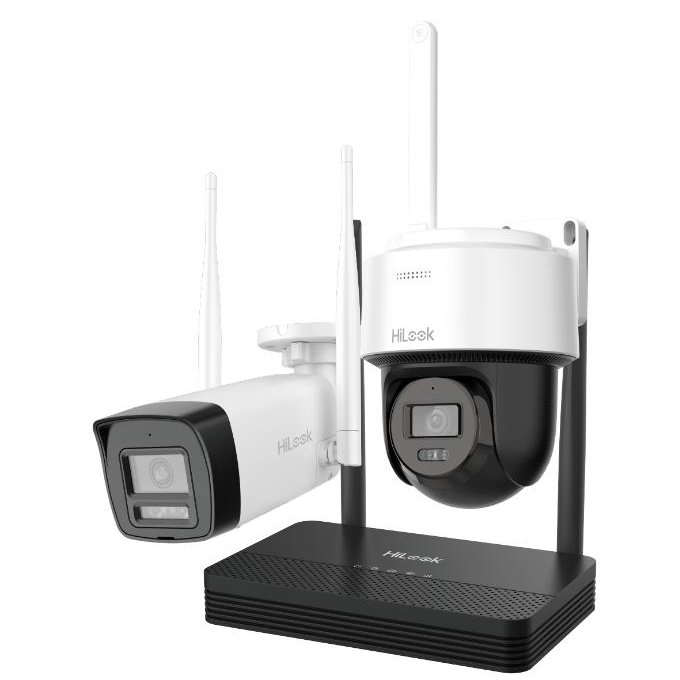 Kit 2 camere Wifi bullet si turret cu NVS HiLook IKS-2044BTH-PH/W, 4MP, lentila 2.8mm, IR 30m, lumina alba, microfon si difuzor, detectie miscare.